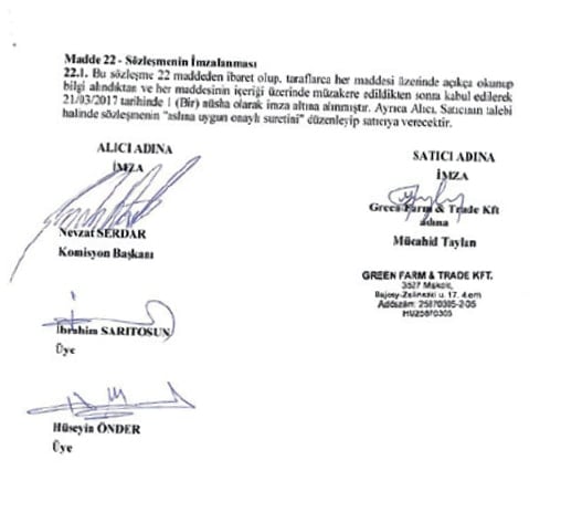 CHP’li Erhan Adem’in paylaştığı sözleşme ‘Sağlık şartlarına uygun AB menşeli Macaristan mahreçli kastre edilmemiş besilik erkek sığırların alımını’ kapsıyor. Belgede, firma adına satıcı taraf olarak Mücahid Taylan’ın da imzası bulunuyor. Taylan ise belgenin 2017’ye ait olduğunu belirterek “Asılsız iddialar için gerekli hukuki süreci başlattım. Hukuk karşısında hesap vermeye de hazırım” dedi.