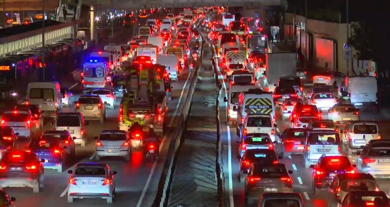 İstanbul’da trafik yoğunluğu yüzde 85’e ulaştı. Bir çok ana arterde trafik durma noktasına geldi.