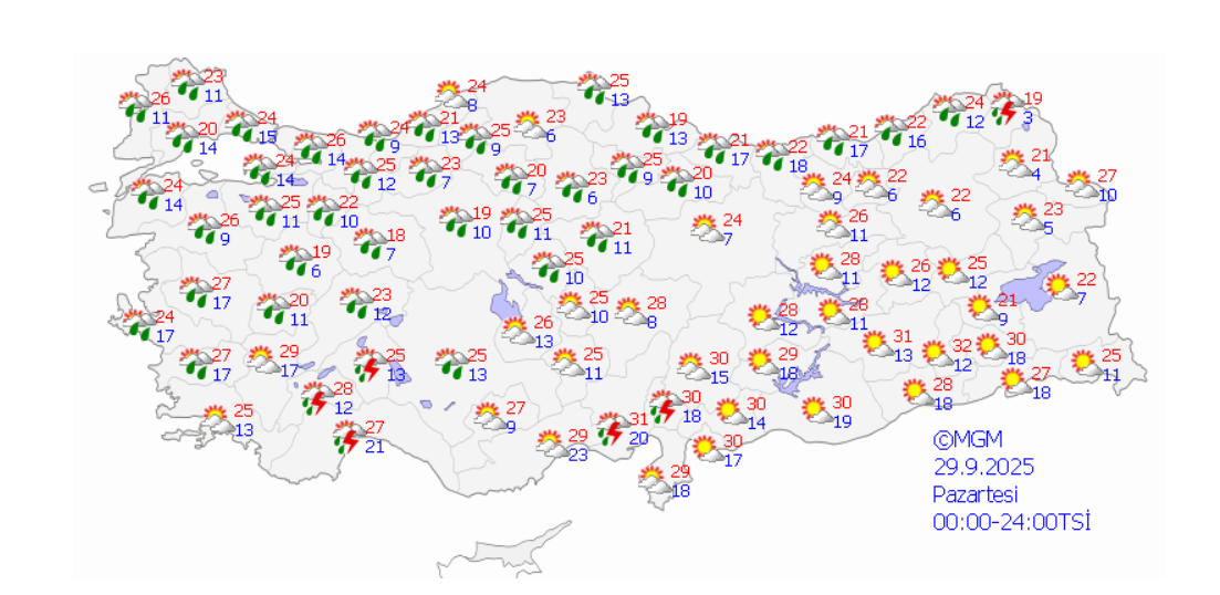 MGM’ye göre 29 ve 30 Eylül’de yağmur yağması beklenen 44 il şu şekilde…